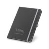 Além disso, o caderno inclui um suporte para esferográfica (não inclusa), adicionando conveniência ao seu dia a dia. Com dimensões de 140 x 210 mm, é compacto e fácil de transportar, perfeito para reuniões, aulas ou uso diário.