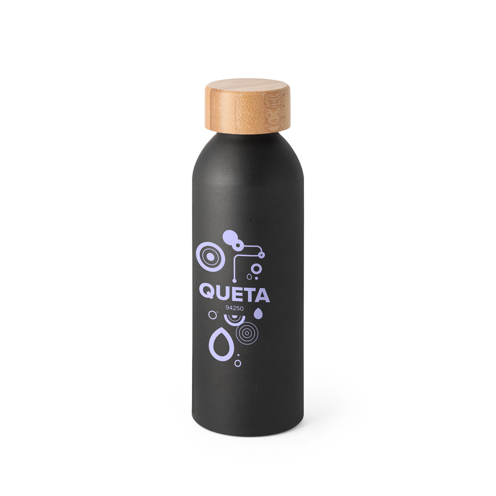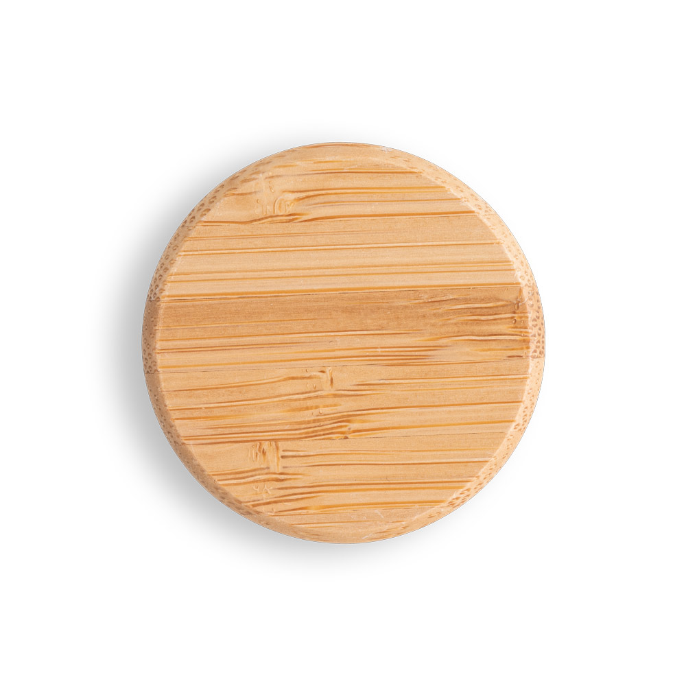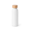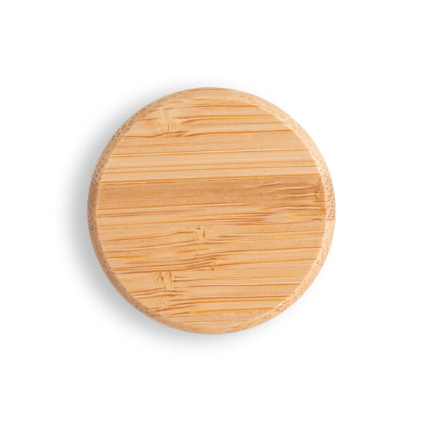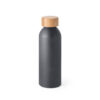 Squeeze de alumínio com acabamento mate e tampa em bambu. Capacidade até 550 mL. Certificação EU Food Grade. ø65 x 197 mm