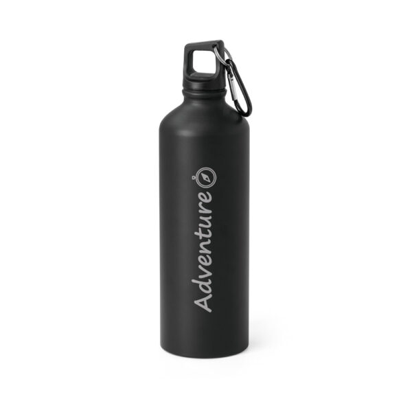 Squeeze em alumínio com acabamento matt, tampa em PP e mosquetão. Capacidade até 800 ml. Certificação EU Food Grade. ø73 x 259 mm