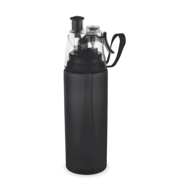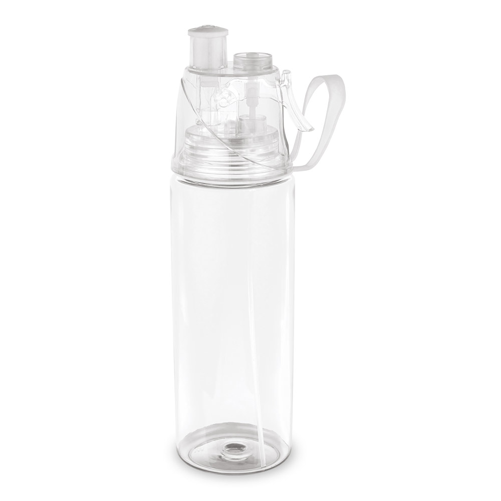 Squeeze em PS e tampa em ABS com bico “push-pull”. Incluso vaporizador, alça para facilitar o transporte e capacidade até 600 mL. Certificação EU Food Grade. ø66 x 250 mm